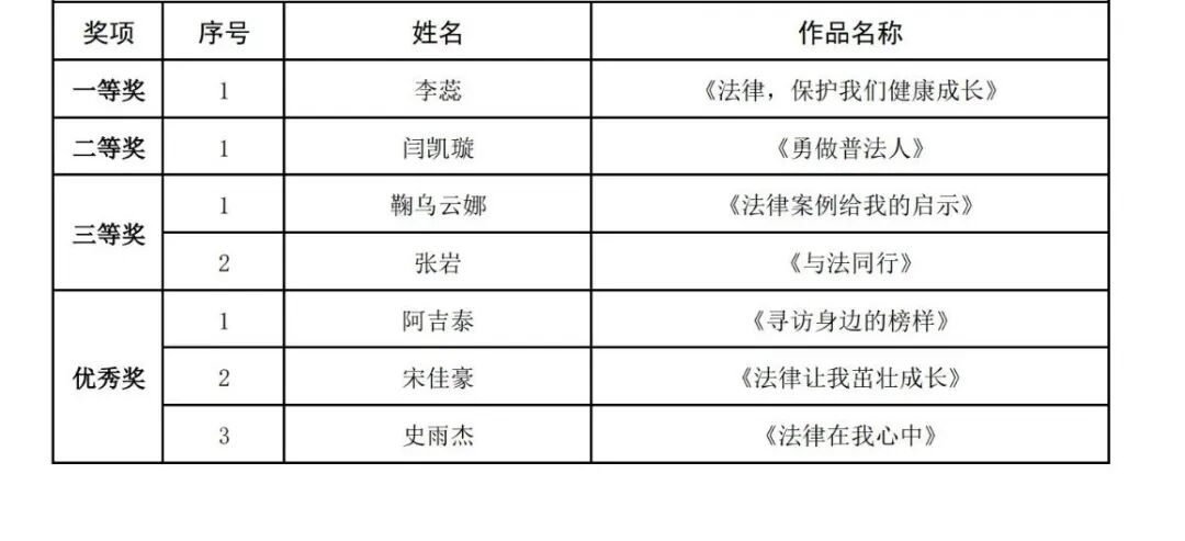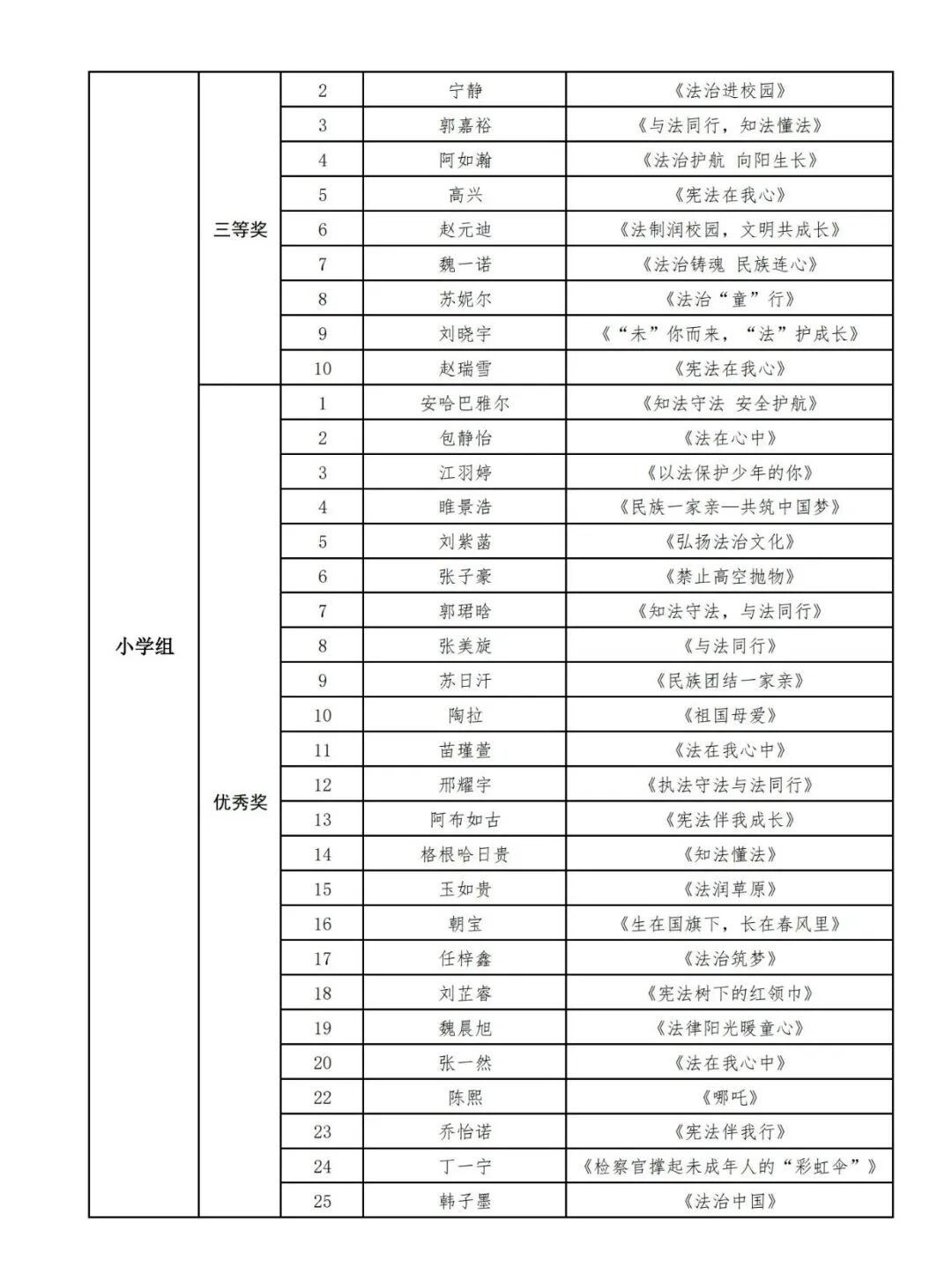 | “北疆蒙芽?翼博杯”青少儿法治文化艺术作品大赛评选结果公示 |