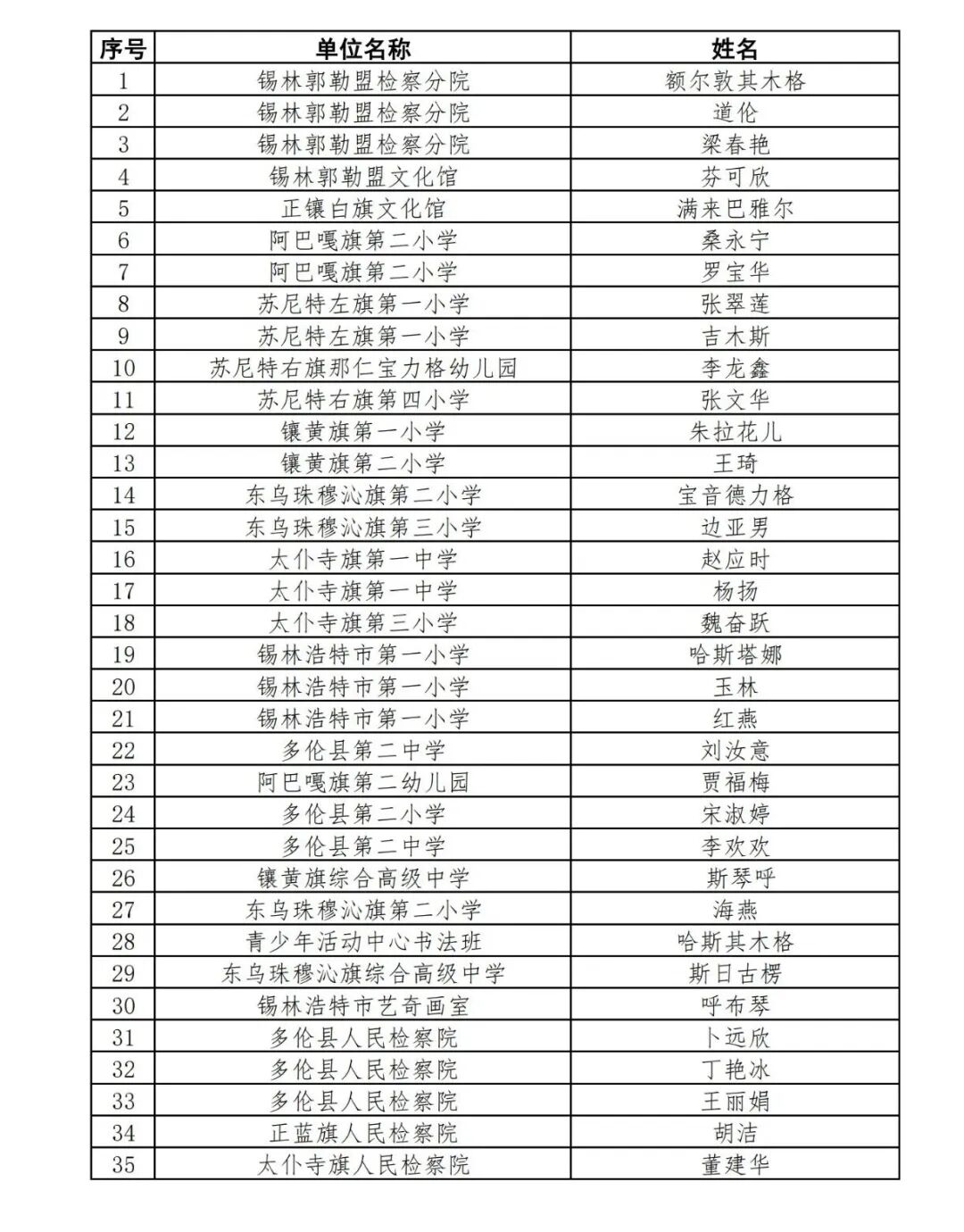 为深入学习贯彻习近平法治思想,提升学生法治素养,锡林郭勒盟检察分院牵头举办“北疆蒙芽?翼博杯”青少儿法治文化艺术作品大赛。本次活动中青少儿用绘画、摄影、书法等艺术表达对法治的理解和感悟,承蒙各单位大力支持,积极组织和推送学生参赛作品,活动已接近尾声。经专业评审团多轮评选,评选结果正式揭晓。参赛作品在法治副校长与学校指导教师的悉心教导下,主题鲜明、内涵深邃,既富有艺术感染力,又彰显法治教育价值,生动诠释了创作者对法治精神的深度理解与独特表达。具体获奖名单如下:(获奖人员于6月10日前往锡林郭勒盟检察分院607领取荣誉证书。)为进一步扩大法治艺术作品的影响力,让更多人感受法治文化魅力,锡林郭勒盟政法委、锡林郭勒盟检察分院联合锡林郭勒盟文化馆将于5月28 日至6月10日在锡林郭勒盟文化馆一楼举办法治艺术优秀作品展。届时,所有获奖作品及部分优秀入围作品将集中展出,公众可免费参观,近距离欣赏法治与艺术碰撞出的火花。