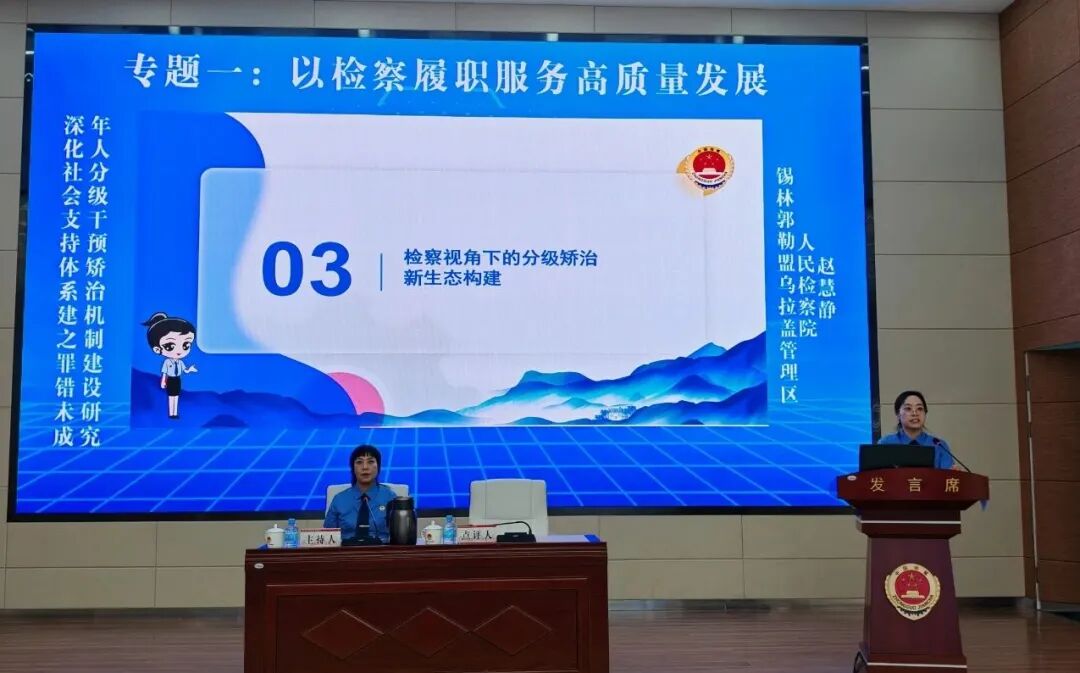 在第三届“敖包检会”上,锡盟检察机关积极参与研讨。乌拉盖管理区人民检察院党组书记、检察长赵慧静以获奖论文《深化社会支持体系建设之罪错未成年人分级干预矫治机制建设研究——以内蒙古自治区锡林郭勒盟乌拉盖管理区实证研究为例》为题作专题发言。