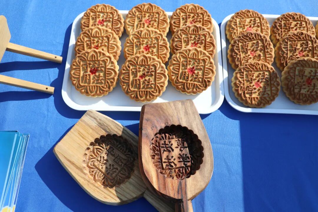 活动现场,麦秸画《麦田间的法治宣讲》、剪纸《检察故事》、喇嘛庙月饼《法韵明心》等多件非遗作品整齐陈列,成为独特的“法治展品”。并放置了法治非遗导览手册,便于群众查看创作背景及关联法律知识,如《中华人民共和国民法典》中知识产权保护条款、《中华人民共和国非物质文化遗产法》对传统技艺的传承规范等。