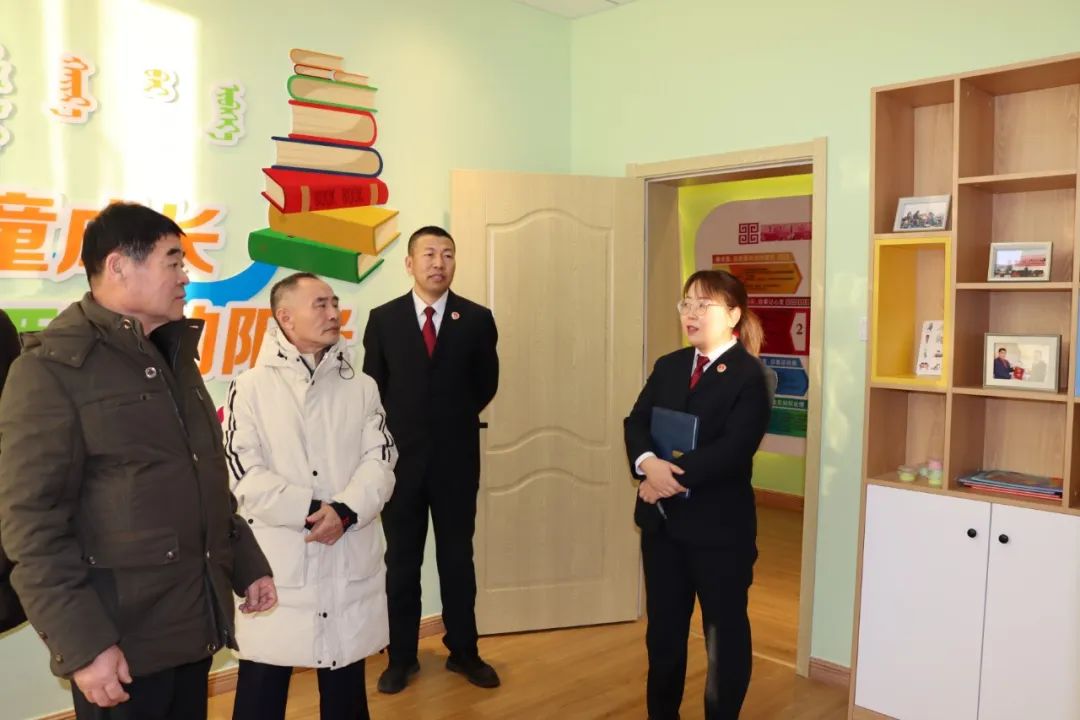 2022年1月16日“七一勋章”获得者、全国政协委员廷·巴特尔(左一)走进阿巴嘎旗人民检察院视察检察工作。