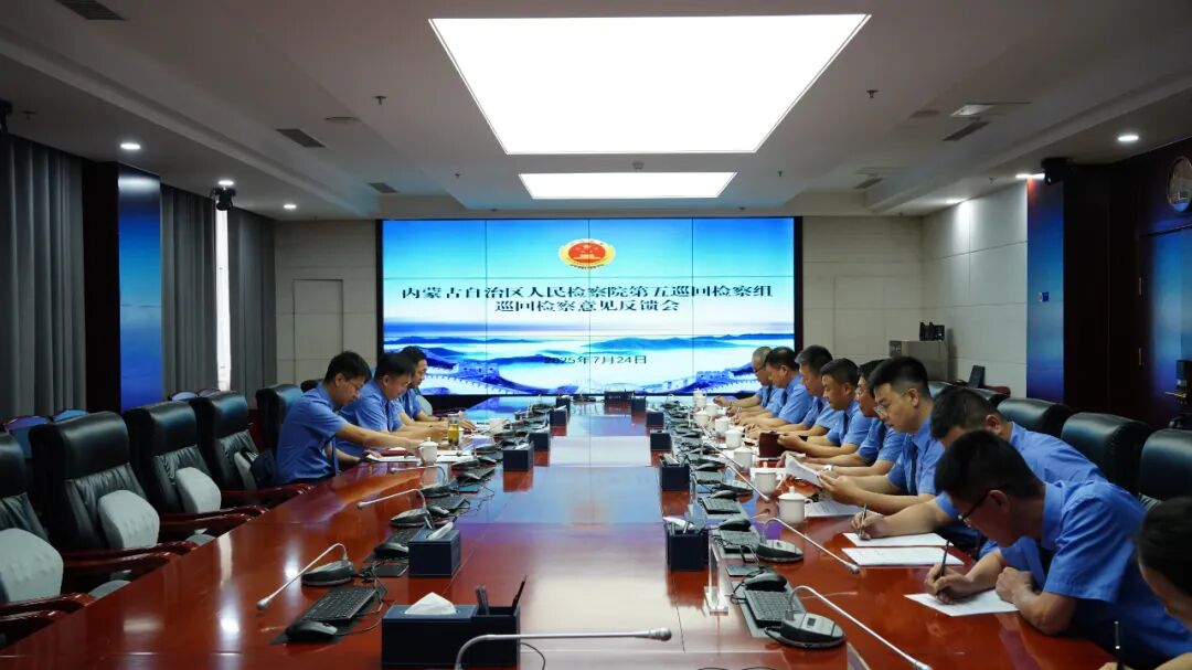7月24日,内蒙古自治区人民检察院第五巡回检察组在锡盟检察分院召开对锡林浩特市看守所巡回检察意见反馈会。盟市两级相关部门主要领导和相关负责人参加会议。