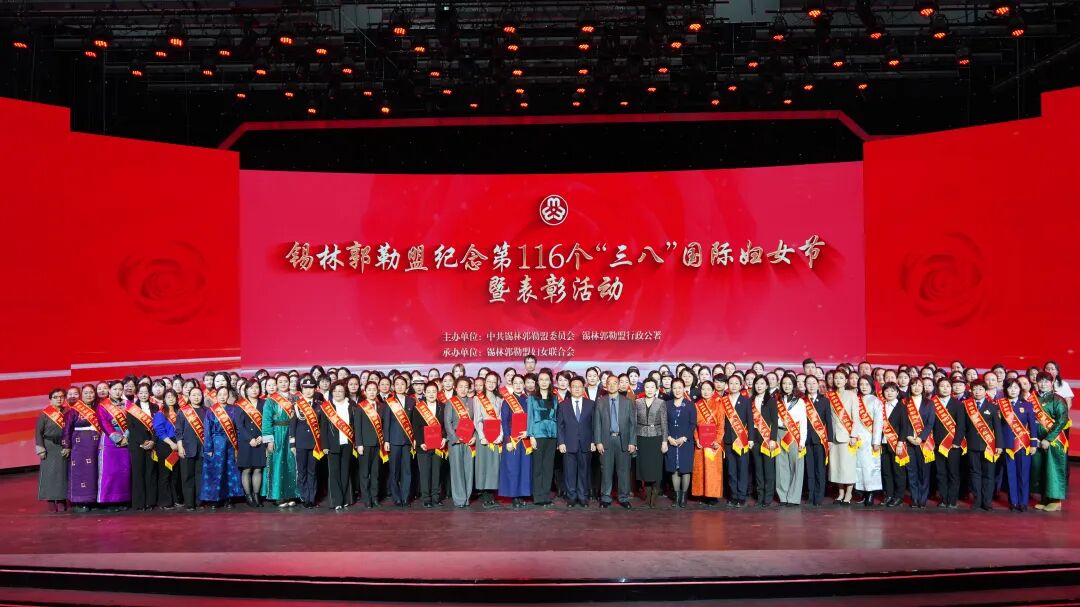 三月春风暖,巾帼绽芳华。为纪念第116个“三八”国际妇女节, 表彰2025年度锡林郭勒盟三八红旗手标兵、 三八红旗手(集体)、巾帼文明岗。3月9日,盟委、行署举办锡林郭勒盟纪念第116个“三八”国际妇女节暨表彰活动。