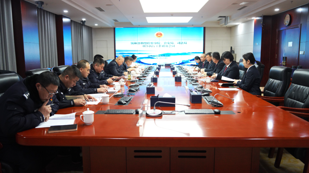 1月23日,锡盟检察分院联合锡盟公安局、锡盟司法局召开刑事执行工作联席会议,全面复盘近三年来全盟看守所与社区矫正领域巡回检察工作,通报监管执法与社区矫正执行中的突出问题,凝聚整改共识,推动全盟刑事执行工作向法治化、规范化、精细化转型。